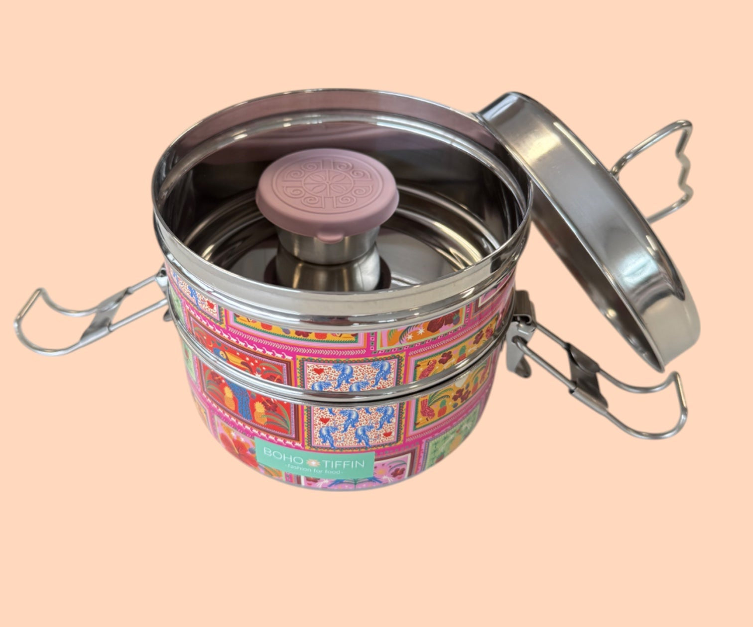 Your Boho-Tiffin is dishwasher safe, but be careful not to place any sharp products next to it that could damage the print. could damage. Hand washing is also fine.-