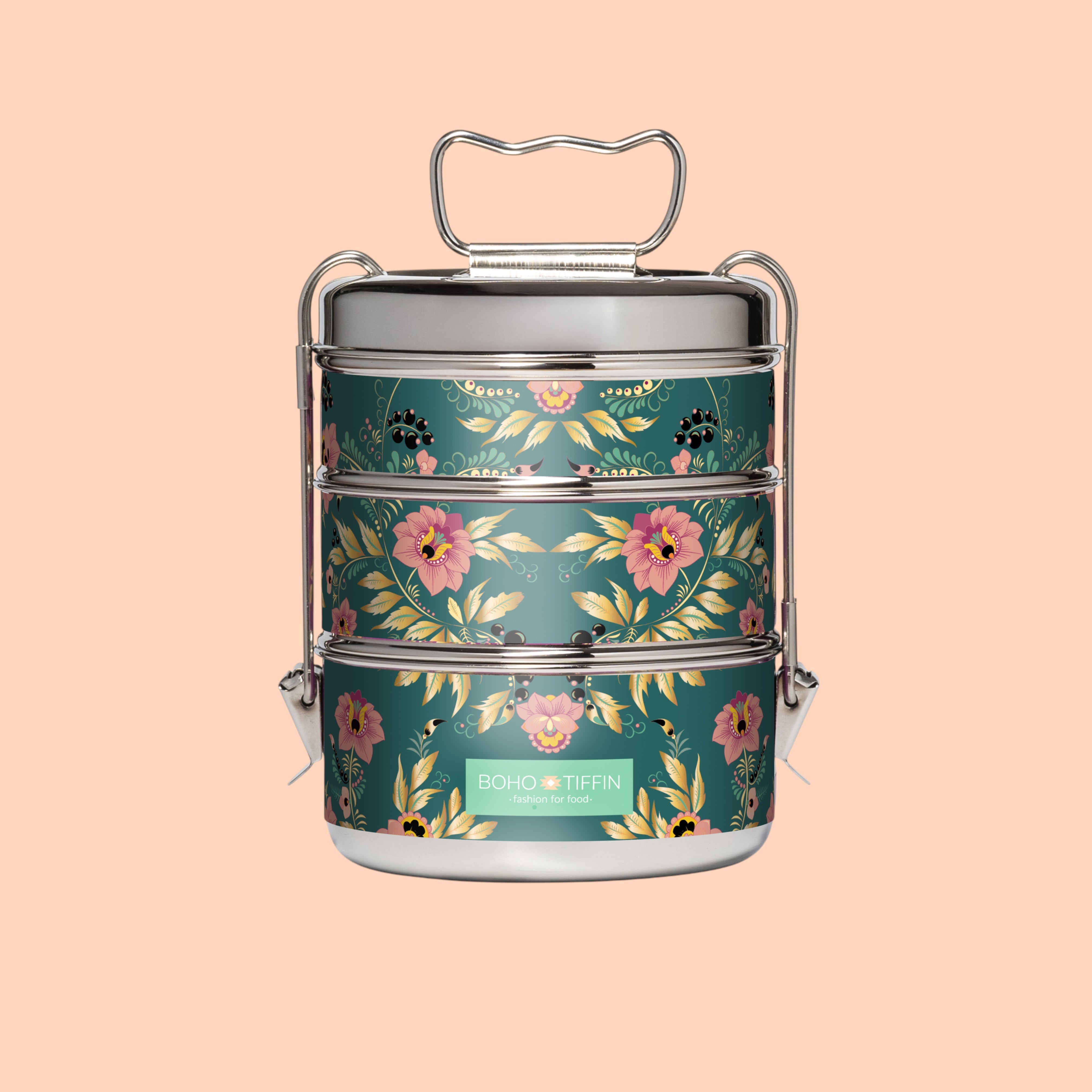 Blumen überall ♡ Dieses wunderschöne Sunny Flowers Boho-Tiffin, ein Design von Luci Sterre, wird Sie glücklich und fröhlich machen.