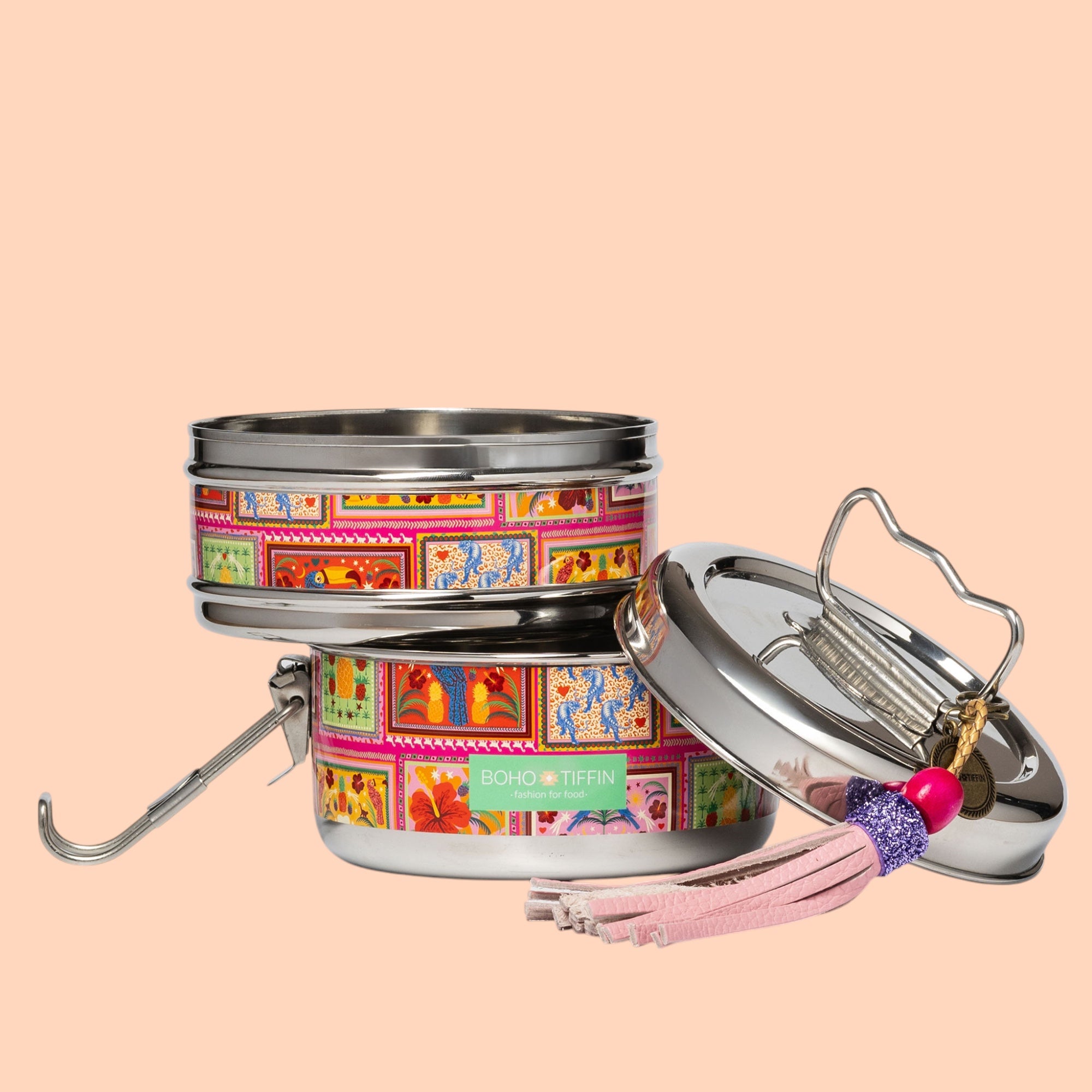 De allernieuwste en meest kleurrijke Boho-Tiffin uit onze nieuwe collectie! Duurzaam en goed voor het milieu, stapelbare bakjes om jouw lunch & snacks los van elkaar mee te nemen in 1 lunchbox.